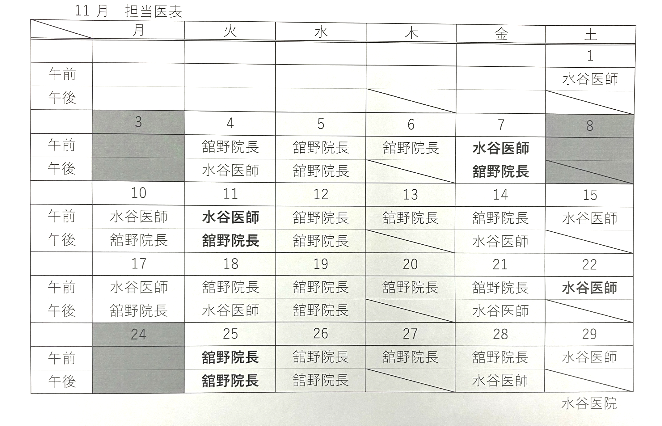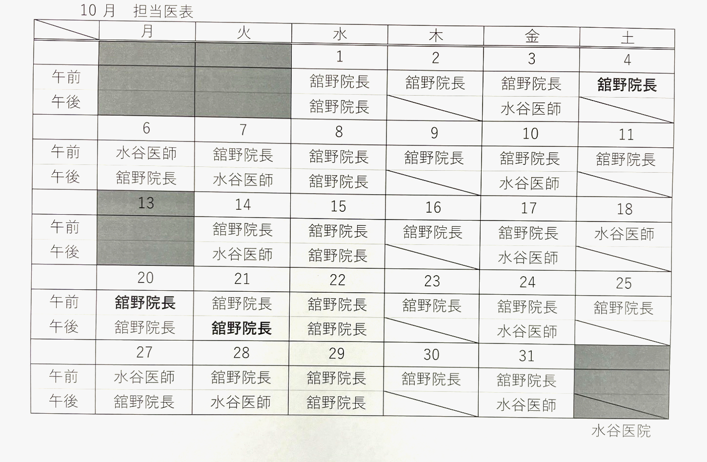 変更になる場合もありますのでどちらかの医師の診察をご希望の場合は電話でご確認ください。